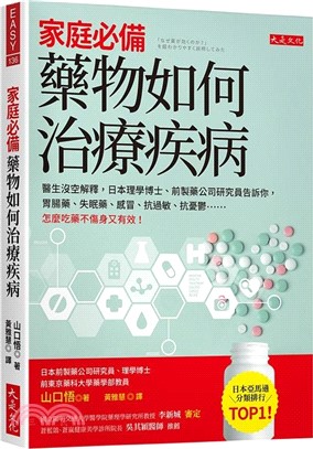 家庭必備 藥物如何治療疾病 : 醫生沒空解釋, 日本理學博士、前製藥公司研究員告訴你, 胃腸藥、失眠藥、感冒、抗過敏、抗憂鬱......怎麼吃藥不傷身又有效! | B 418.1 2691 | 山口悟著 ; 黃雅慧譯 |